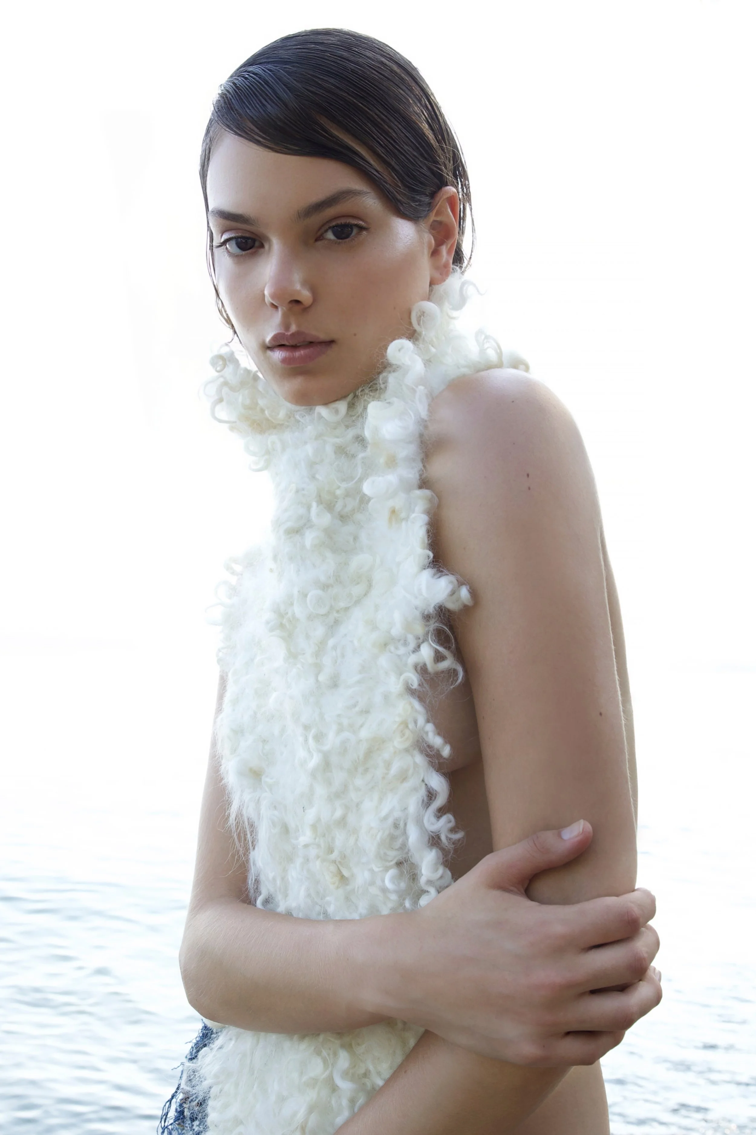 She works with Ohio family farms to obtain luxury fibres from their happy animals to create her hand-felted and low to zero waste textiles that form her couture fashion and art.